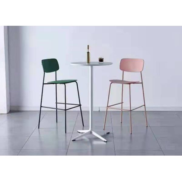 Pink Commercial Stainless Steel Bar Stools With Backs Ergonomic Design Images |